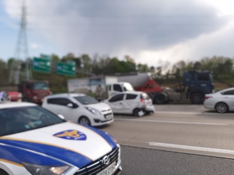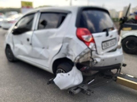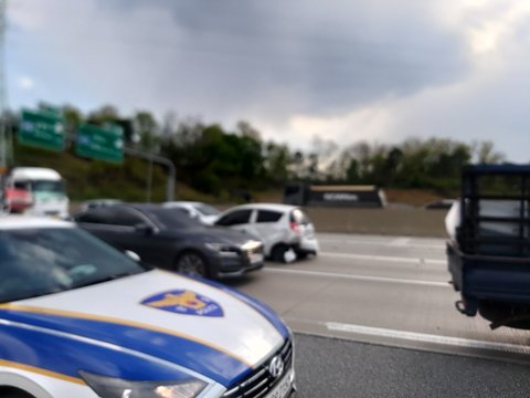 4월 27일 오후 4시경에 서울외곽순환도로에서 구리휴게소 지나 퇴계원으로 빠지는 길에서 사고를 당했습니다