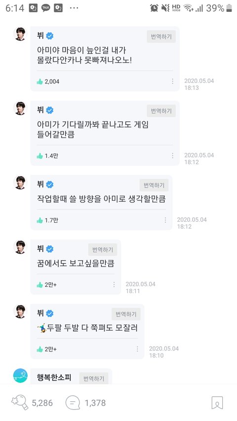 +)뷔 위버스 댓글 뭐임 ㅋㅋㅋㅋ