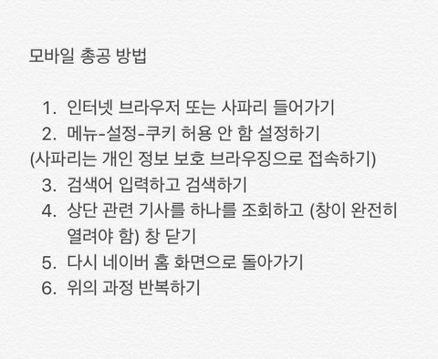 +그리고 검색할때마다 쿠키 지워야한대!! 쿠키 안지우면 검색해도 소용없음 ㅠㅠ 쿠키 지우는 방법 이어쓰기로 올렸어 방법 모르는 사람 글 들어가서 봐줭 그리고 밑에 사진은 모바일 총공 방법이야