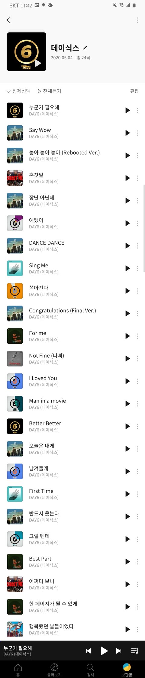 이거 내 플레이리스트인데 여기 없는곡 위주로! 콩츄, 베스트파트, 놓아놓아놓아, 한페이지, 어쩌다보니 내최애곡이양 이런스타일 좋아행