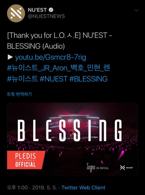 1.뉴이스트 공식 너튭에 올라온 영상(블레싱)