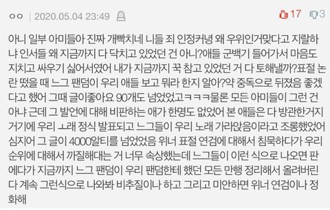 ㅇㅌ에 있는 그 글에 가서 싸움 만들지말고(안그럴거 알아)