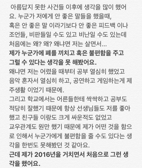 저 당시에 화가 많았던거 말하는거나 행동한 부분에 미숙하고 그랬던 점에 대부분 팬들도 인정하고 그때 여러 논란에 대해서 부정하는사람 거의 없어 꼭 오해말아주면 좋겠어