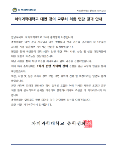 이에 차의과학대학교 대면강의 실시에 대한 공론화를 실시하는 바이며
