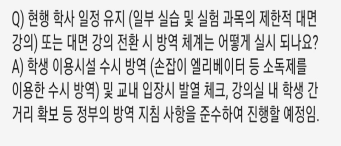 2-5. 학교 공지사항에서는 거리 두기를 실천한다고 하였지만 캠퍼스 특성 상 교내 식당 또는 강의실에서 학생 간 충분한 거리를 확보할 공간이 없습니다.