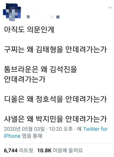 근데 이건 자의식 과잉, 정신승리가 너무 심한 거 아닌지... 최소 몇 십 년부터 몇 백 년의 전통은 갖고 있는 브랜드들인데 몸값이 비싸다드니 이런 얘기는 쪼옴... 심지어는 《동양인》이라서 그렇다는 것도 있었는데 지디, 제니, 카이, 찬열 등등 명품 브랜드 뮤즈, 엠버서더 같은 거 한 우리나라 아이돌들 꽤 되지 않나...? 좀 웃기고 안쓰럽기까지 하더라...