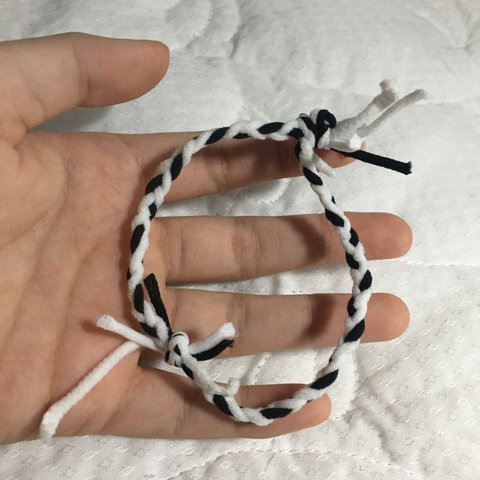 색은 상관없이 맘대로 하고 이렇게 끈만 따로 빼서 끝에 묶고 땋아서 두개 만든 다음에 두개 같이 묶으면 끝!!!