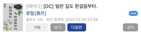 우선 첫 번째인 작품은 ‘류월’ 작가님의 [빌런 길도 한걸음부터] 입니다!