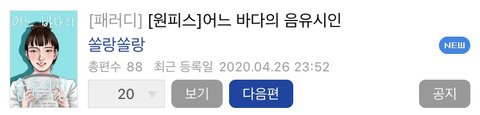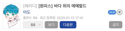 이 작품은 ‘쏠랑쏠랑’ 작가님의 [어느 바다의 음유시인] 입니다. {원피스} 패러디로 아주 신박하고 독특한 설정을 가지고 있는 소설입니다. 이거 진짜 추천추천!!!!