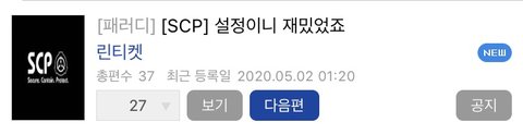 이 작품은 그 귀하디 귀한 {SCP} 패러디입니다ㅠㅠ 아주 보배롭죠ㅠㅠ 작가님은 ‘린티켓’ 이시고 작품 제목은 [설정이니 재밌었죠] 입니다.