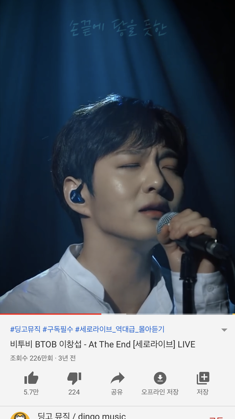 이창섭 at the end인데 나 이거 첨 들었거든 와 ㅅㅂ 노래 존아 좋아 노래도 개잘부르는데 이건 넘 지겨운 말이니까ㅇㅇ 새벽에 들으면 개오질 것 같음 독서실 갔다가 밤에 집에 올 때 들으면 갬성 폭발해서 눈물날 것 같아 진짜 개오지는 노래임 안들어본 애들 있으면 꼭 좀 제발 들어봐 멜로디들 왜 이 좋은 노래 안알려줬어