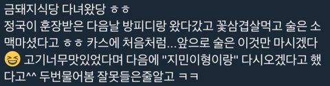 왜 진짜 사랑에 빠지면 어? 여기 맛있네? 어? 이거 괜찮네? 어? 이거 재밌네? 다음에 (사랑하는 사람)이랑 같이 와야지 국룰아니냐... 어휴 큰배 봥퓨ㅣ디앞에서도 저러고 못말려못말려 쫭9는 말려도 큰배는 못말려^^~ 저러고 진짜로 둘이 갓자너 ㅋㅋ