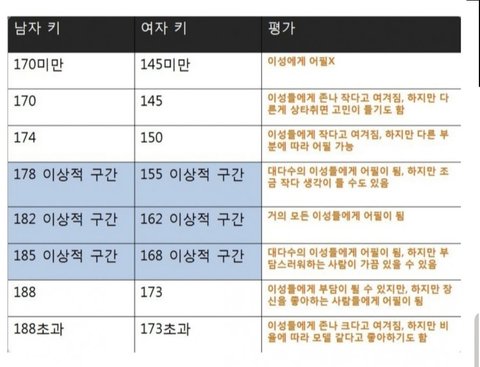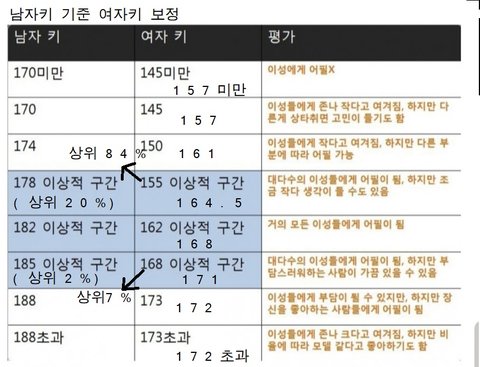 저 짤이 여초에서 남녀 키 기준표라던데