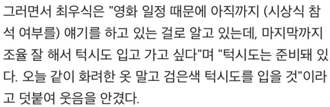 최우식 : 그...실수 한 거 같습니다. 그냥 예쁜 옷 입은건데 너무 밝은 옷 입은 거 같습니다 ^^;;;