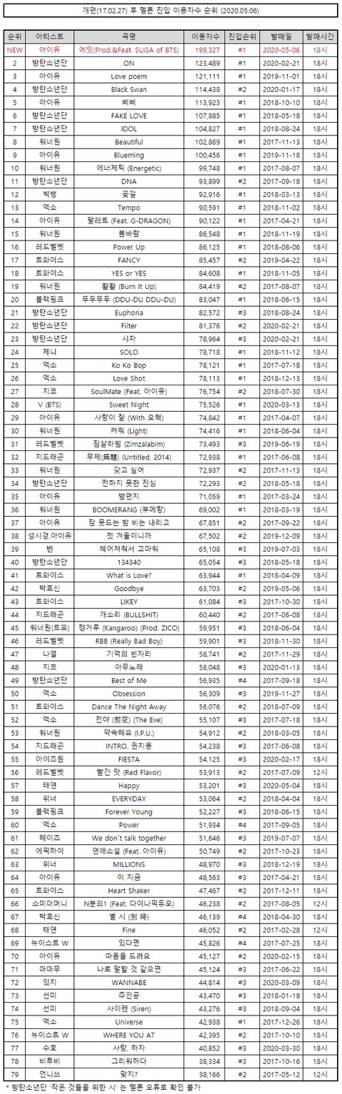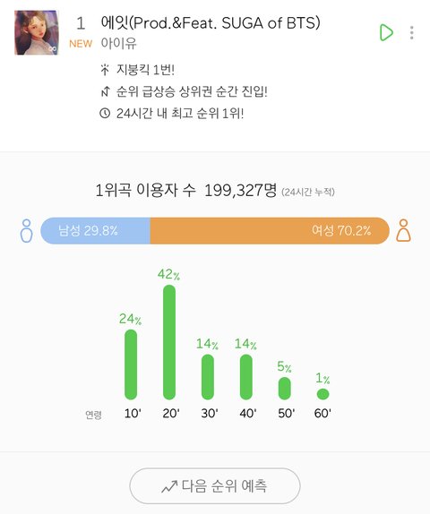 와 ㅁㅊ 1위부터 7위가 다 방탄아이유네 ㄹㅇ넘사다 저 기록을 누가 깨냐