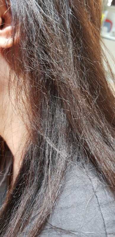 너무 힘들어서 대충 물기만 제거하고 나와서 그때는 몰랐는데 다 마르고보니 머리가 다 탔습니다 사진 첨부합니다