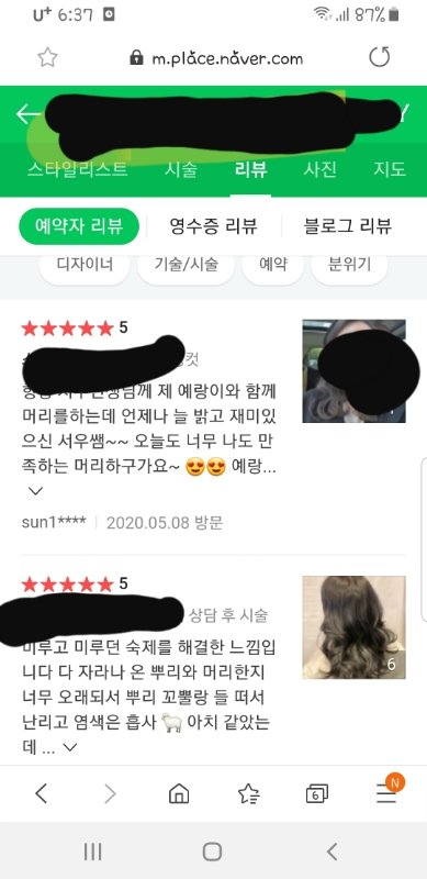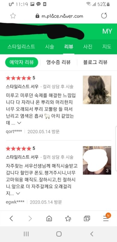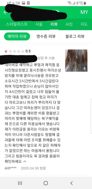 위에는 머리하고 온날 찍은거고 아래는 제 후기 및 날짜도 아직 안된 이상한 방문후기입니다 저 후기속에는 해당 미용실 부팀장도 있었습니다 ㅎㅎㅎ