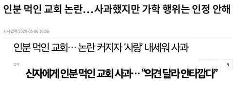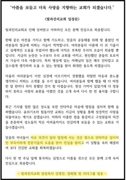교회는 표면적으로 사람들의 눈치가 보이니 사과하는 척 입장문을 냈지만