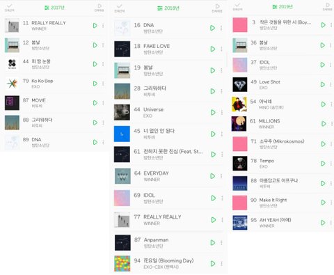 난 엑소, 비투비, 위너