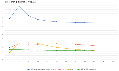 45분 그래픈데....아쉬웡...4위 프리징 할줄 알았는데....