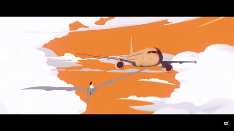 여자아이가 탄 용은 곧 아이유가 탄 비행기와 만납니다.