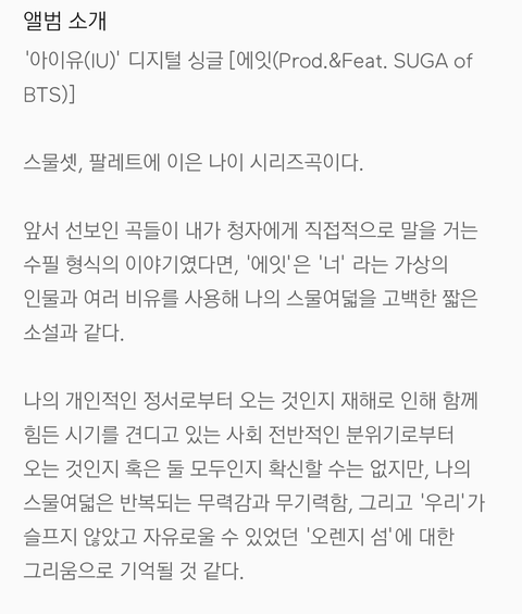 아이유 신곡 ‘에잇(eight)’이 발매되었는데