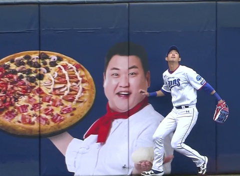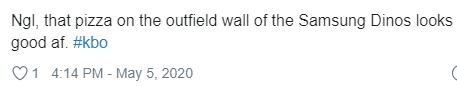 빈 말이 아니라, 삼성 라이온즈 구장 외야 벽에 그려진 피자는 정말 맛있어 보인다.