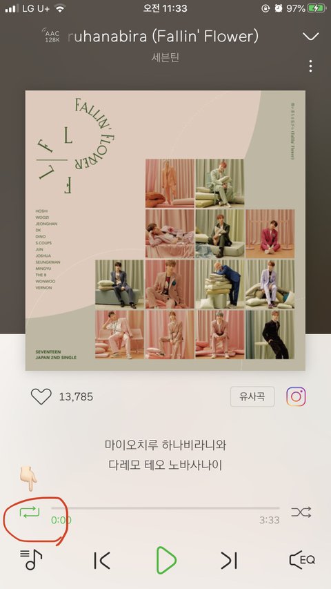 사진처럼 반복재생 눌러야돼 안눌러야 돼? 갑자기 헷갈려서 ㅡㅜㅜ