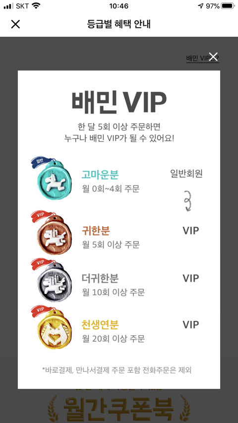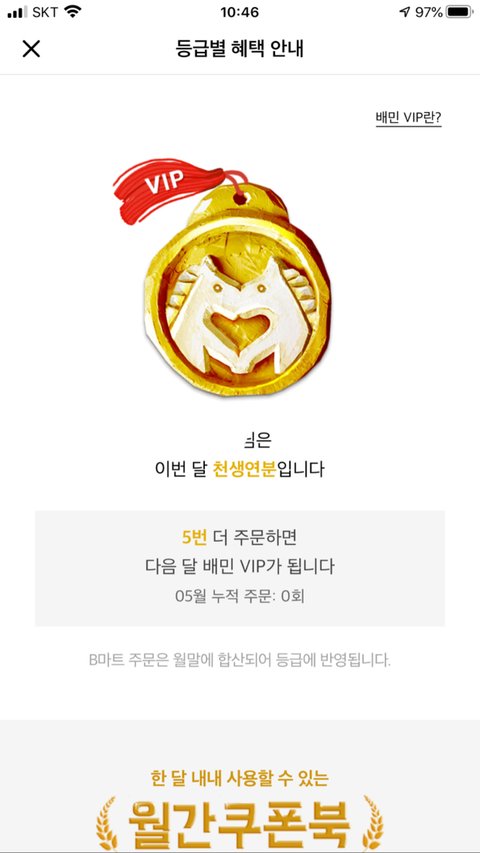 나 배민 vip 천생연분인데 음식 추천