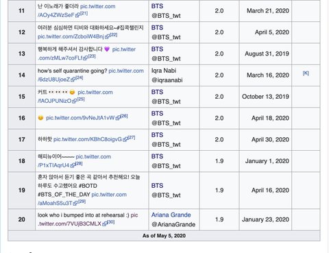 돌았 짹 역사상 가장 많은 하트수 TOP20에