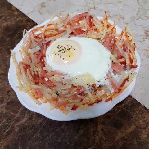 준비물: 감자1개, 햄 (선택), 부침가루 반스푼, 소금 한꼬집, 후추