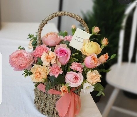 핑크랑 피치 꽃바구니라길래