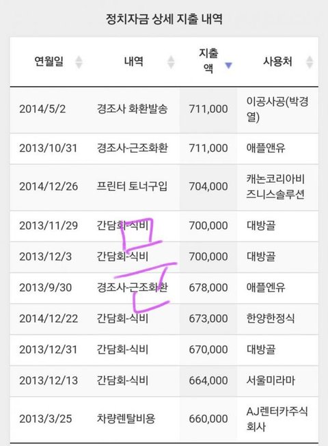 기자간담회 식비 딱 1건만 최고로 60만원임