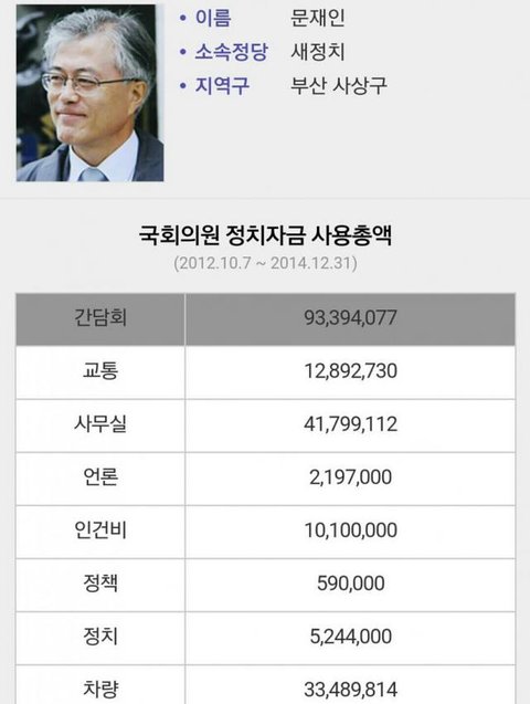 문재인: 총 9400만원 (전체 의정비의 30%)