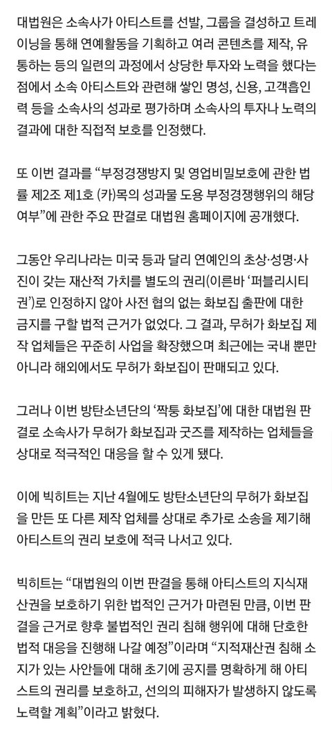 법원에서 위법성인정됨 ㅇㅇㅇ 이거 이전에는 불가능했었나봐 넥히트덕에 소속사들이 이제 그런거에 대응 할 수 있게 된듯
