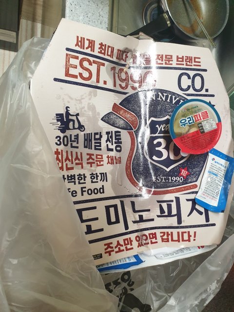 그런데 작년 12월 마지막으로 "도미노 피자"를 시켰을때 콜라가 포장박스 가운데 누워져서 속에 있는 피자를 눌려버려서.....