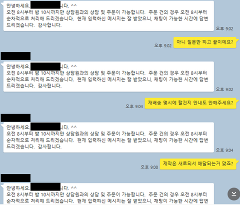 그러더니 밤 10시가 되니까 제작이 누락됐다고 9일 오전에 보내겠다고 하시네요.