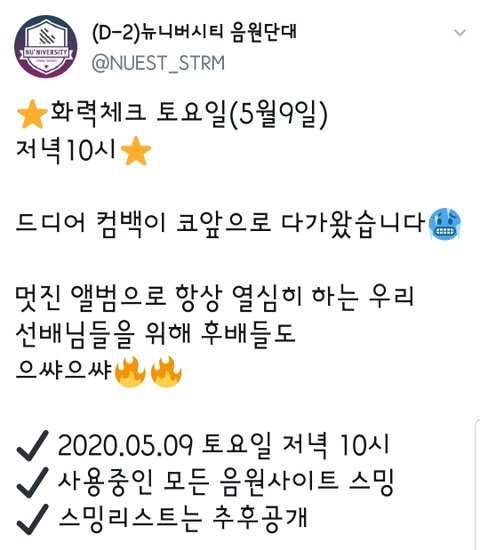 뉴이스트 음원단대 장학금 이벤트