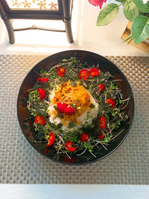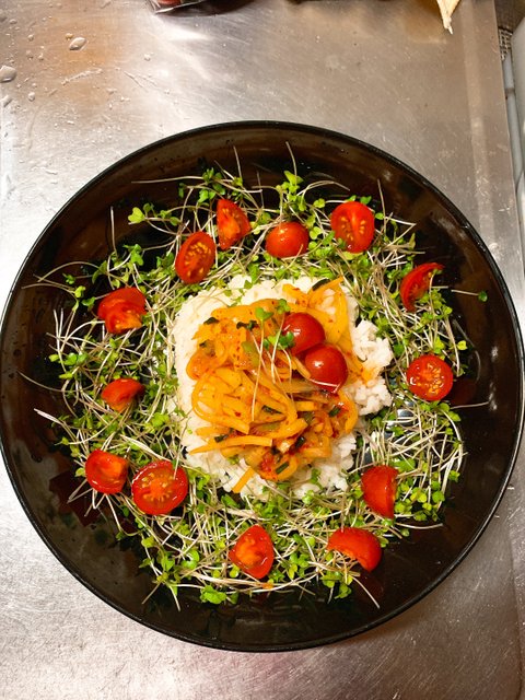 약간 데리야끼 같은 풍미로 먹을 수 있다.그리고 담아낸다.남은 야채로는 얼려 있던 한국산 어묵탕을 다시를 내어 해본다.브로콜리 새싹 생채 비빔밥재료는 별거 없이 조금 남은 생채와 브로콜리 새싹, 방토만( 야채 아무거나) 준비하고 취향대로 고추장이나 양념 간장을 더한다. 취향대로 고추장이나 양념 간장을 더한다. 나는 장없이^^김도 뿌셔넣고^^