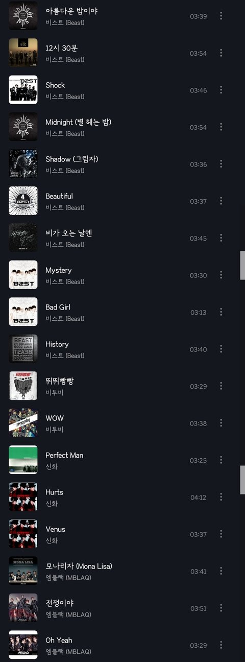 남돌 수록곡은 잘 몰라서 그냥 들어보고 좋은거 고름