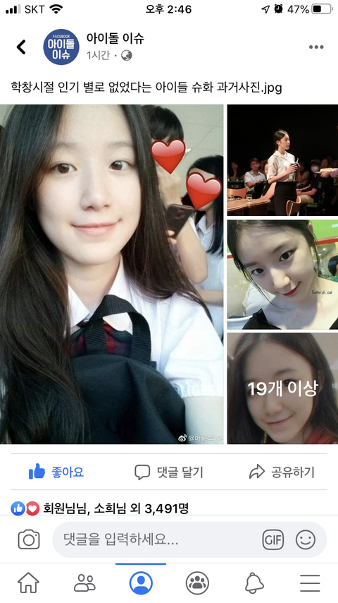 슈화과거사진이 올려진 게시물을 봤는데