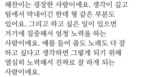 예전 활동에서 윈윈이가 말하는 해찬이...