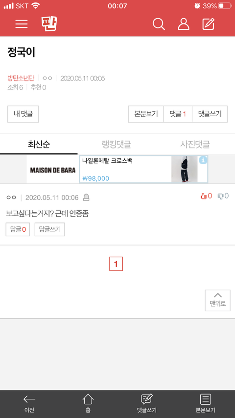 인증은 댓으로