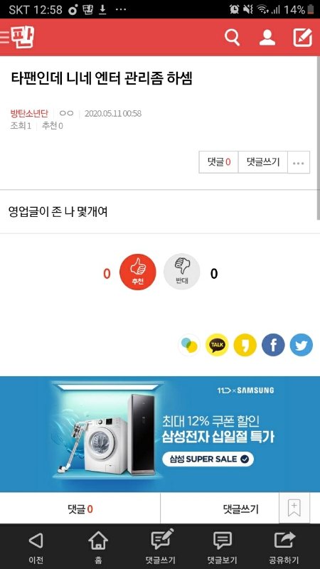 *팬톡에다 엔터 관리를 말해봤자 불가능