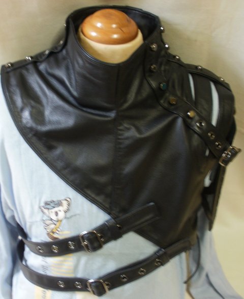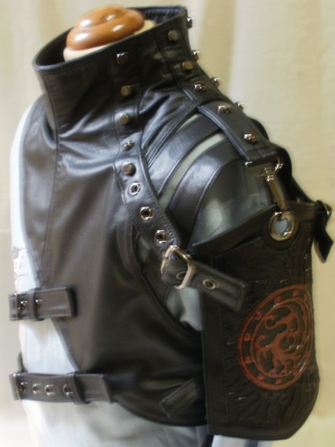 가죽에 삼족오를 카빙하고 흑니켈 금속장식을 부착한 디자인으로 부드러운 가죽과 콜라보하여 제작한 스팀펑크 가죽패션입니다.(마디샤