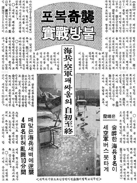 1966년 8월8일 해병대 장교들이 새벽에 공군 비행학교(현 제 5 공중기동비행단 및 김해국제공항)를 기습했다가 반격을 당해서 오히려 해병대가