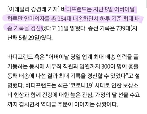 우리 아미들 어버이날 선물로 900대이상 바디친구 선물했구나