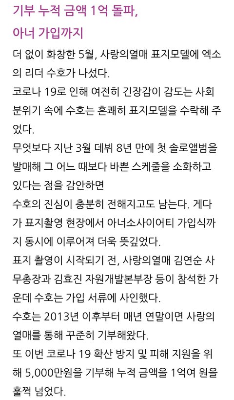 와 2013년부터 기부해서 누적금액 1억 넘겼다니... 미쳐따 김준면 진짜 천사야