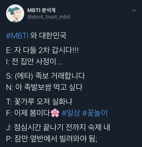 인팁이 보는 mbti별 이미지