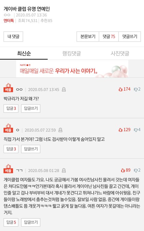 베댓 황당하네 저건 여돌이던 남돌이던 간에 먹금했어야 할 글 아니야? 증거도 없이 누구다 이랗게 말하면 다 같이 욕해줘야 하니? 지금은 박규리라고 기사 나고 그러니까 당연히 반응이 다르지; 뭐만하면 남돌 어쩌구 지겨워 죽겠네